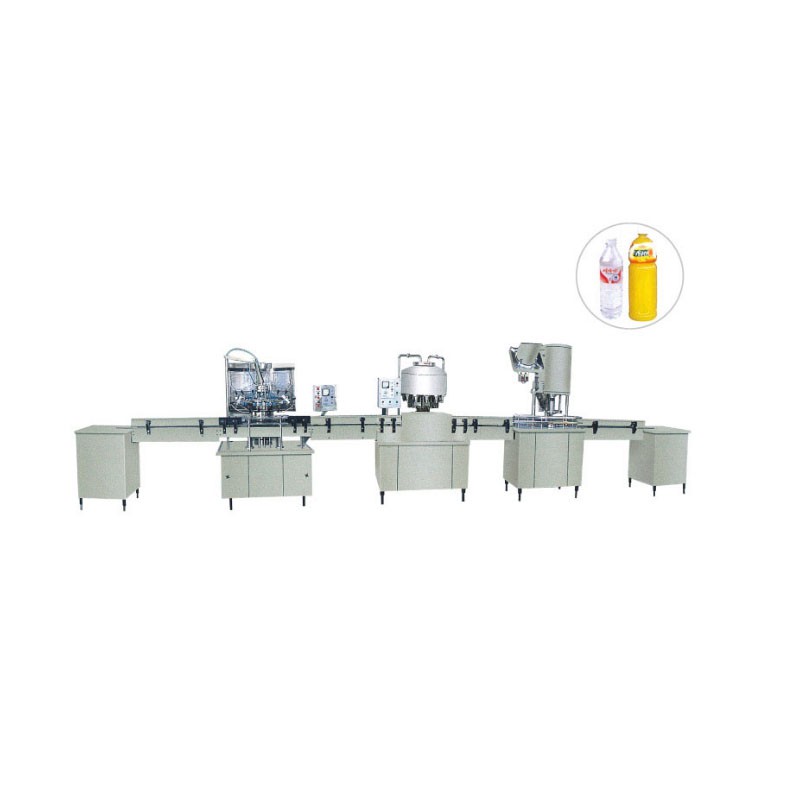 本純凈水生產(chǎn)流水線有自動(dòng)沖瓶機(jī)、常壓灌裝機(jī)、自動(dòng)旋蓋機(jī)及輸送機(jī)等系列產(chǎn)品組成。此純凈水灌裝生產(chǎn)線沖洗、灌裝、封口等主要關(guān)鍵部位均采用優(yōu)質(zhì)不銹鋼材料制成,具有工藝先進(jìn)、系統(tǒng)完善、性能可靠、使用方便等特點(diǎn)。